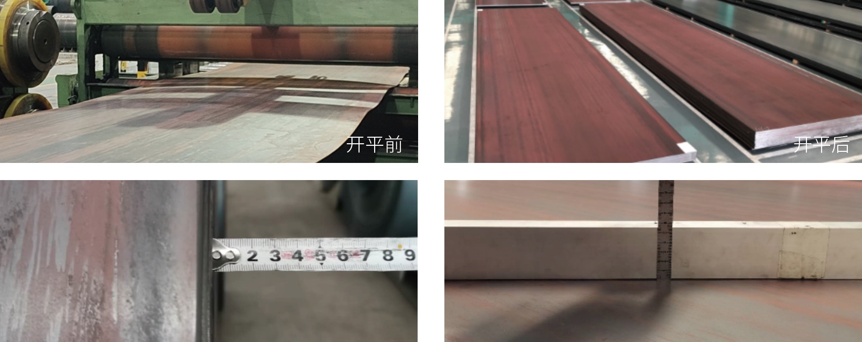 2020年9月,河鋼集團(tuán)與大明集團(tuán)聯(lián)合成立“新材料研發(fā)及應(yīng)用中心”,《熱軋免調(diào)質(zhì)耐磨鋼的推廣及應(yīng)用》已作為研發(fā)中心成立后的頭一個(gè)項(xiàng)目展開工作。從2006年起,大明國際從歐美引進(jìn)FIMI、NOVA、VIGANO等世界尖的高強(qiáng)和超高強(qiáng)鋼開平生產(chǎn)線。該系列生產(chǎn)線擁有多個(gè)輥包,可以進(jìn)行初、粗、精三個(gè)道次聯(lián)動(dòng)矯直,能夠?qū)η?qiáng)度在1300Mpa的產(chǎn)品進(jìn)行在線矯直、開平,充分釋放應(yīng)力。同時(shí),通過對(duì)加工過程鋼板表面溫度變化與參數(shù)調(diào)整進(jìn)行有機(jī)結(jié)合,終成品率由原先的60%提升到了90%以上,有效解決了免調(diào)質(zhì)耐磨鋼的加工問題。