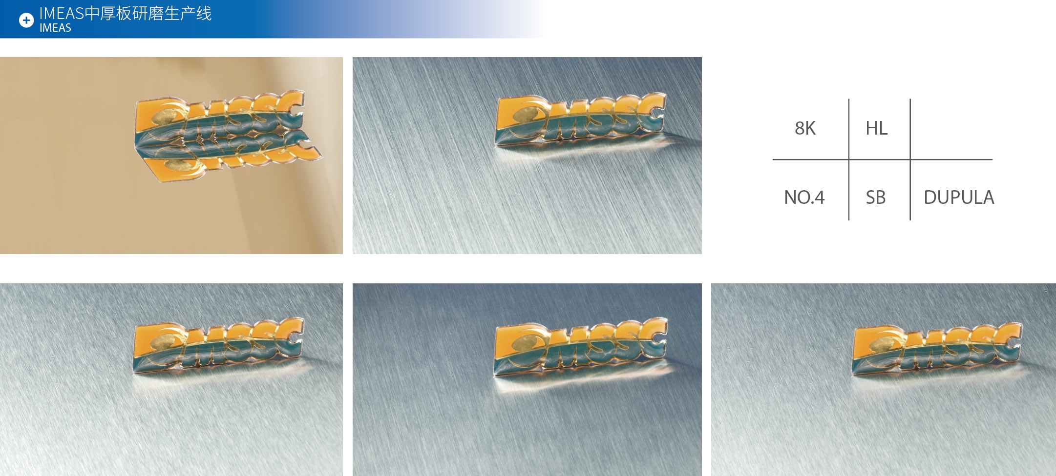 大明表面研磨平臺(tái)有整卷油性磨砂、平板干性磨砂、平板油性磨砂等工藝,主要生產(chǎn)NO.4、HL、8K、SB風(fēng)格表面不銹鋼板。該平臺(tái)已經(jīng)實(shí)現(xiàn)從冷軋到熱軋、從薄板到中厚板、從平板到卷材、從干磨到油性磨砂的全范圍加工能力。